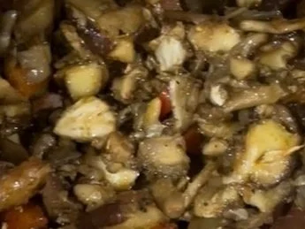 Chop and saute shiitake mushrooms in a pan with olive oil.
